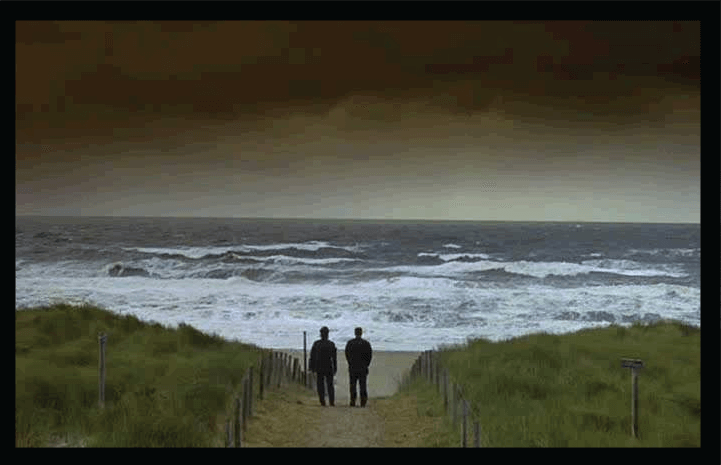 마침내 바다에 이르게 된 마틴과 루디는 해변가에 앉습니다. 드넓은 바다와 지평선을 바라보며 마틴은 루디의 품에서 죽게 됩니다. 천국의 문 앞에 서 있는 듯 루디는 바다를 바라보며 자신의 차례를 기다립니다.